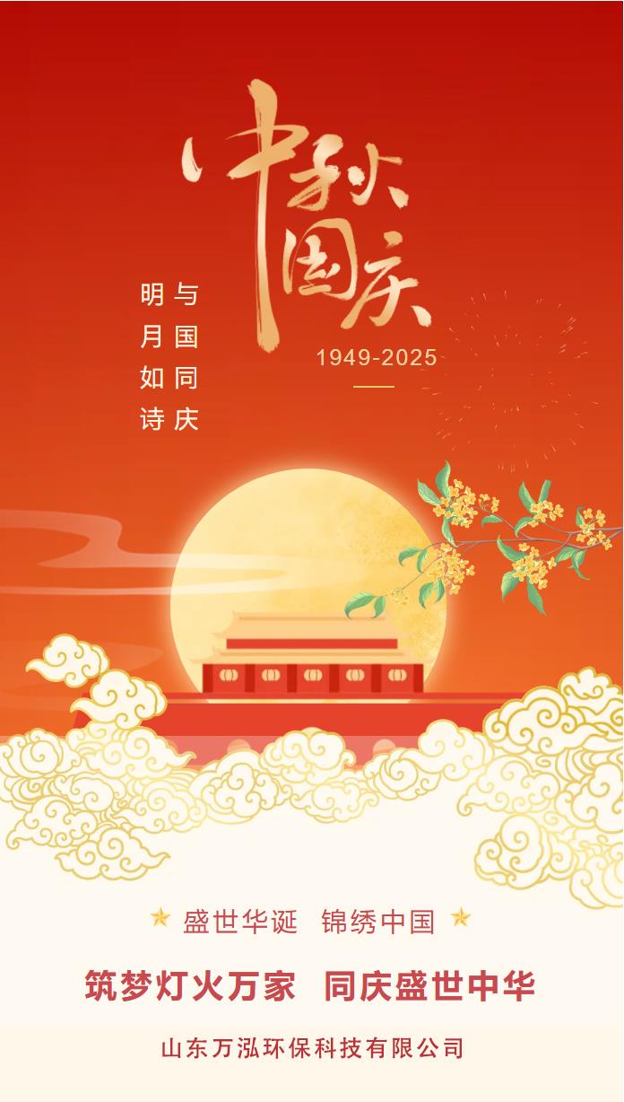 筑梦灯火万家,同庆盛世中华。明月如诗,与国同庆。山东万泓环保祝大家2025国庆中秋双节快乐!
